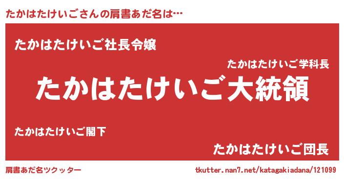 | 意味不明あだ名 | 『たかはたけいごフォーエバー』 |