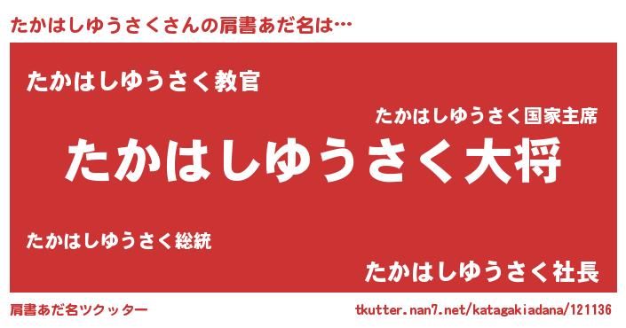 | 男性向けラノベタイトル風あだ名 | 『タカハシユウサクスレイヤー』 |