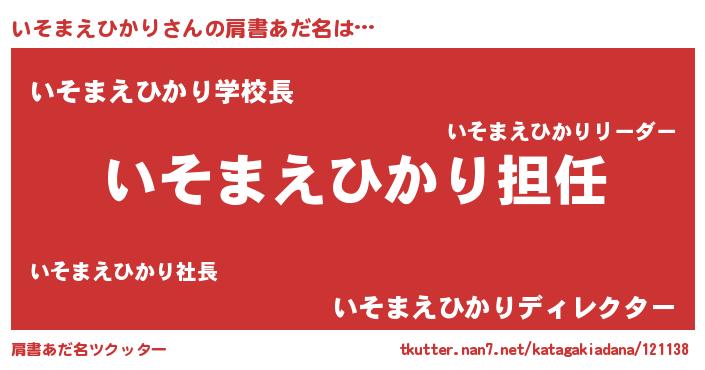 | 男性向けラノベタイトル風あだ名 | 『いそまえひかりという概念が存在しない退屈な世界 』 |
