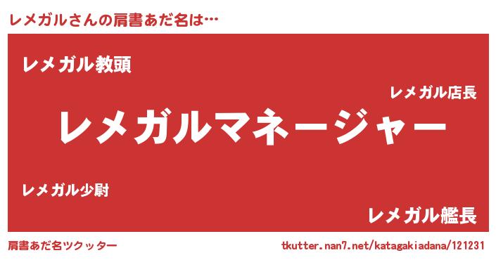 | ヒーロー風カッコイイあだ名 | 『ネオレメガル』『スーパーレメガル』 |
