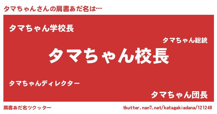 | ヒーロー風カッコイイあだ名 | 『ネオタマチャン』『愛の使者タマちゃん』 |