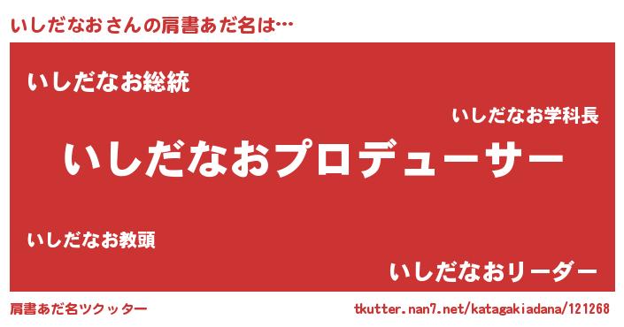 | 意味不明あだ名 | 『自称いしだなお』『永久保存いしだなお』 |