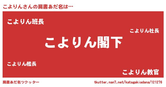 | 女子向けラノベタイトル風あだ名 | 『こよりんストレイドッグス』 |