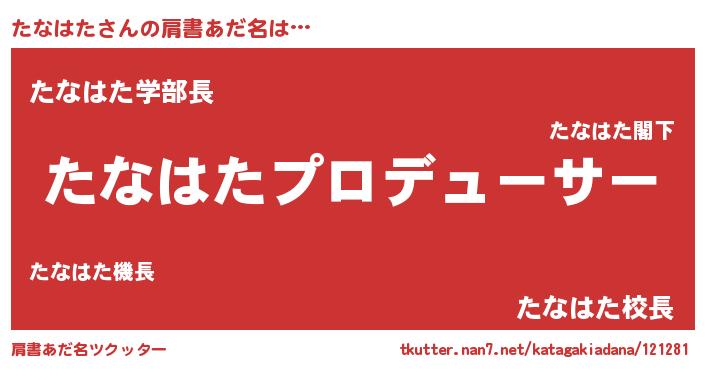 | ヘコむあだ名 | 『たなはた(苦笑)』『たなっふぃ~』 |