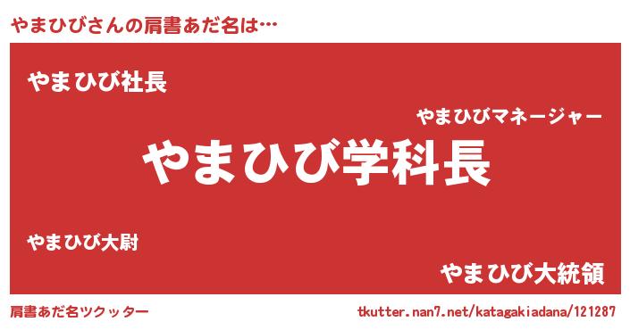 | ヒーロー風カッコイイあだ名 | 『慈愛の使者やまひび』『黄金騎士ヤマ』 |