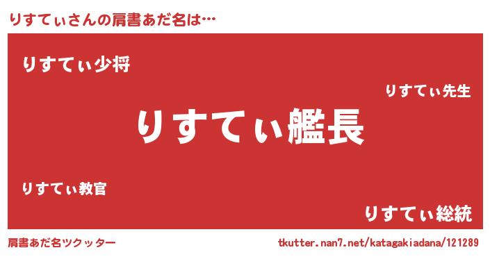 | 意味不明あだ名 | 『なめこ科りすてぃ属』『自称りすてぃ』 |
