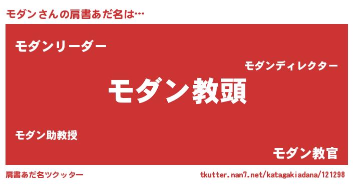 | ヘコむあだ名 | 『モダン(笑)』『モダっちょ』 |
