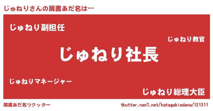 | 意味不明あだ名 | 『ペロリンじゅねり』『永久保存じゅねり』 |