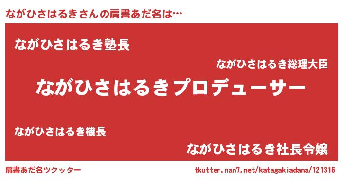 | 男性向けラノベタイトル風あだ名 | 『ながひさはるきに滅ぼされるだけの簡単なお仕事です』 |