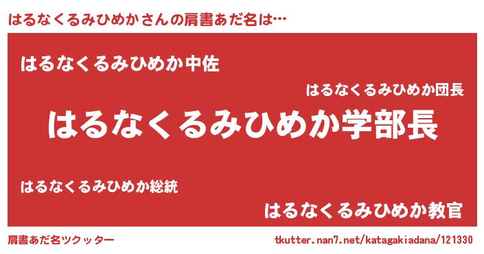 | ヒーロー風カッコイイあだ名 | 『正義の使者はるなくるみひめか』 |