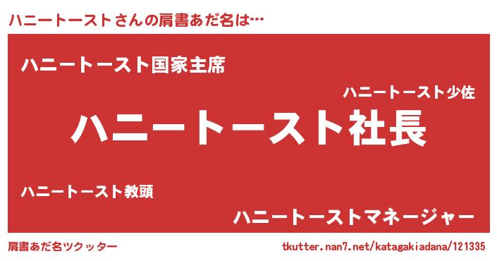 | 男性向けラノベタイトル風あだ名 | 『ハニートーストの憂鬱』 |