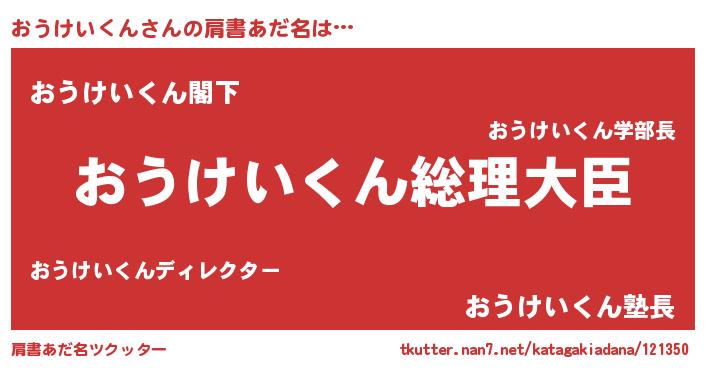 | 意味不明あだ名 | 『おうけいくんフォーエバー』 |