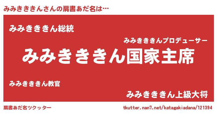 | 女子向けラノベタイトル風あだ名 | 『みみきききんの雑貨屋さん』 |