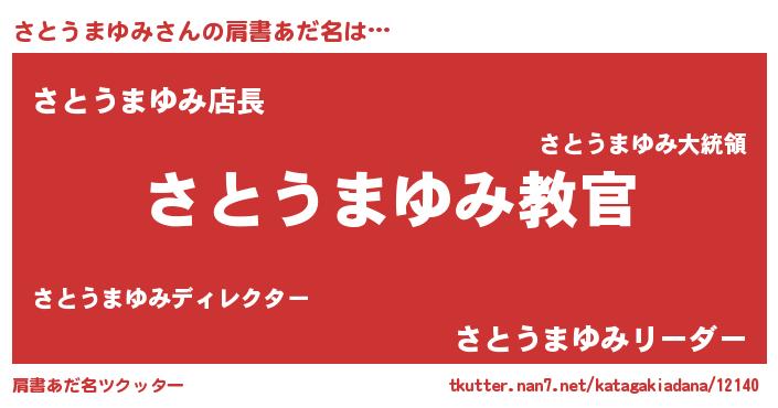 | 女子向けラノベタイトル風あだ名 | 『悪役さとうまゆみに転生したようですが、知った事ではありません』 |