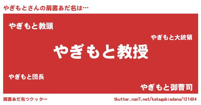 | ヒーロー風カッコイイあだ名 | 『慈愛の使者やぎもと』『ネオヤギモト』 |
