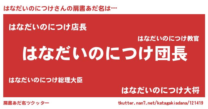 | 胡散臭い通販商品みたいなあだ名 | 『信頼と実績のサプリメント…その名も「はなだいのにつけ」』 |