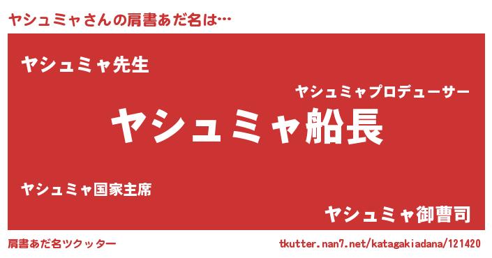 | ヘコむあだ名 | 『ヤシュミャ(笑)』『ヤシにー』 |