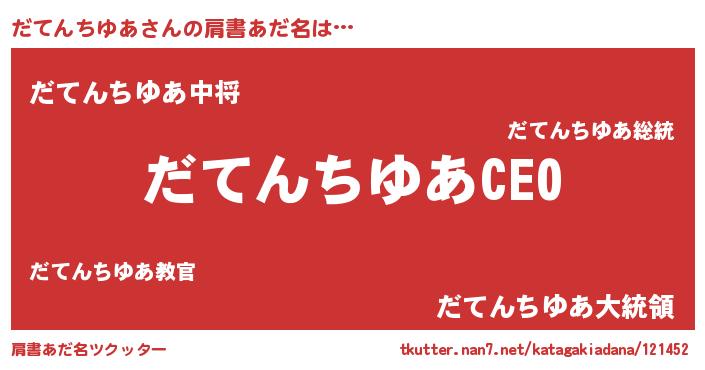 | 男性向けラノベタイトル風あだ名 | 『だてんちゆあの憂鬱』 |
