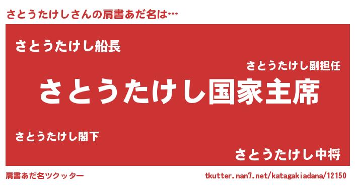 | 男性向けラノベタイトル風あだ名 | 『やはりさとうたけしの青春ラブコメはまちがっている 』 |
