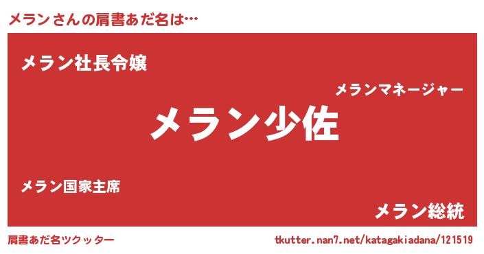 | 恥ずかしいあだ名 | 『プリティーメラン』『メランデラックス』 |