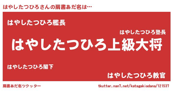 | 料理風あだ名 | 『はやしたつひろごはん』 |