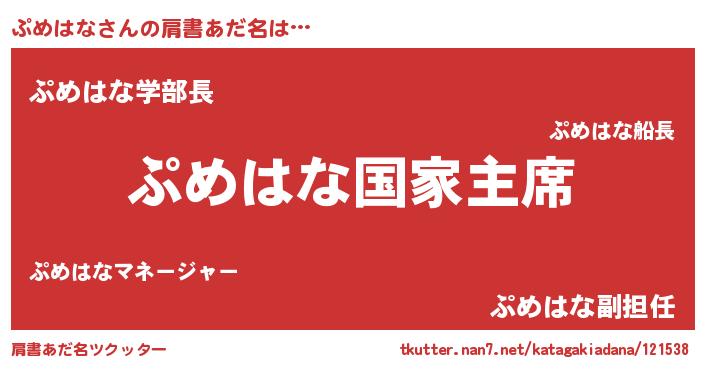 | 意味不明あだ名 | 『ぷめはなフォーエバー』『自称ぷめはな』 |