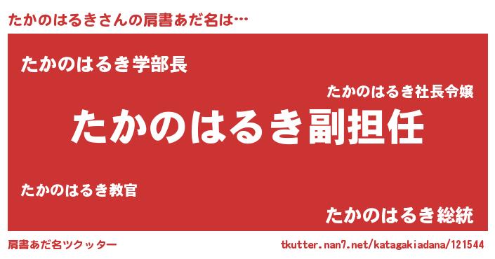 | ヘコむあだ名 | 『たかのはるき(震え声)』『たかっふぃ~』 |
