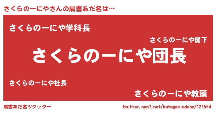 | 男性向けラノベタイトル風あだ名 | 『さくらのーにやの嫁は女の子じゃないと思った?』 |