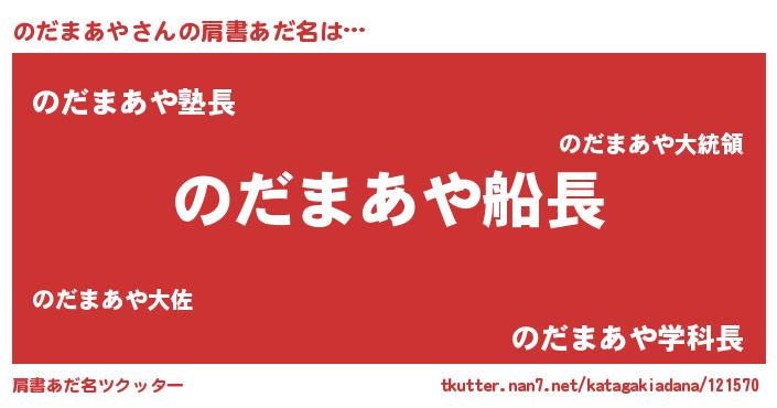 | 男性向けラノベタイトル風あだ名 | 『うちののだまあやが世界を掌握している!』 |