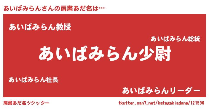 | ヒーロー風カッコイイあだ名 | 『正義の使者あいばみらん』 |