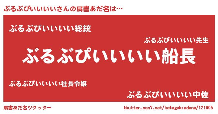 | 意味不明あだ名 | 『自称ぶるぶぴいいいい』 |