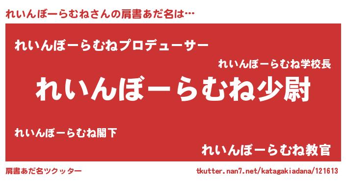 | ヘコむあだ名 | 『れいふぇ~』『れいんぼーらむね(震え声)』 |