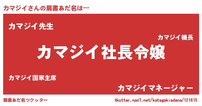 | 胡散臭い通販商品みたいなあだ名 | 『必ず成功する霊験あらたかなお札…その名も「カマジイ」』 |