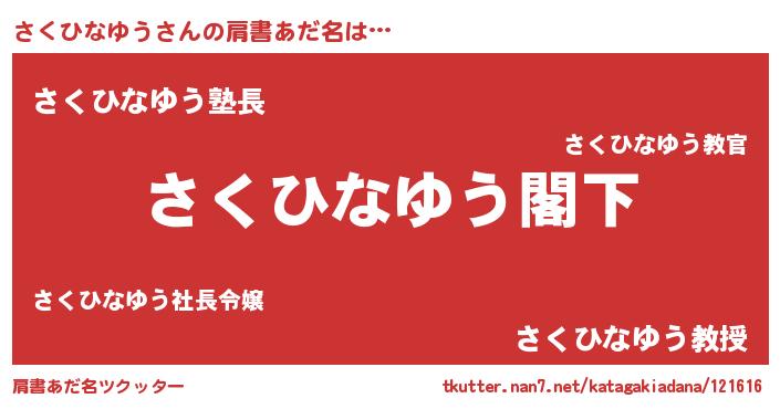 | ヒーロー風カッコイイあだ名 | 『最強戦士サクヒナユウ』『幻影騎士サク』 |