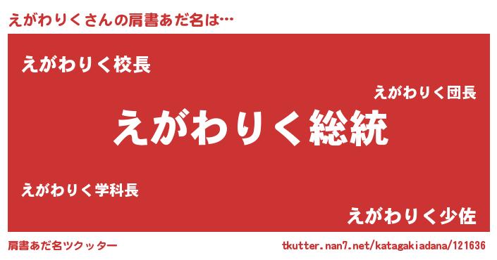 | ヘコむあだ名 | 『えがわりく(震え声)』『えが太郎』 |