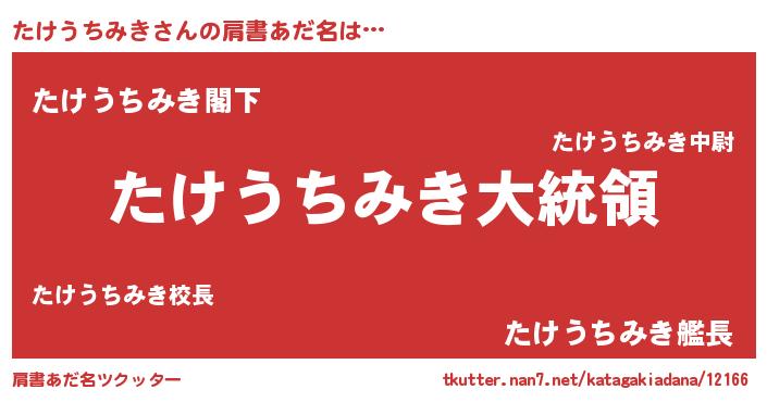 | 男性向けラノベタイトル風あだ名 | 『やはりたけうちみきの青春ラブコメはまちがっている 』 |