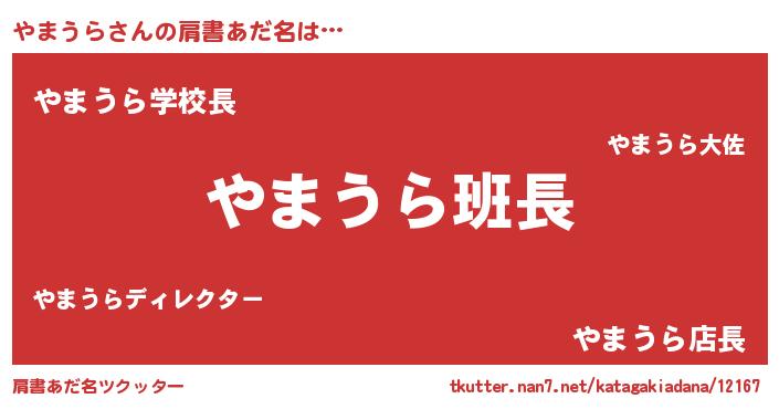 | 意味不明あだ名 | 『とにかく怪しいやまうら』 |