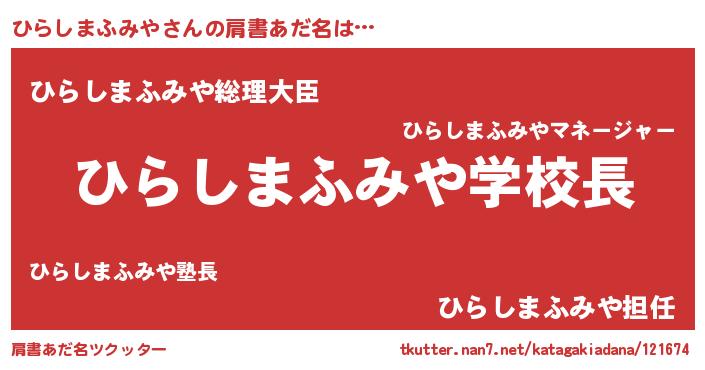 | 男性向けラノベタイトル風あだ名 | 『ノーゲーム・ノーヒラシマフミヤ』 |