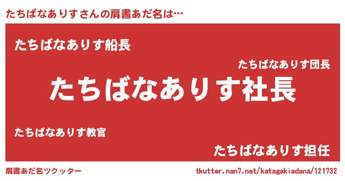 | ヘコむあだ名 | 『たちにー』『たちばなありす(笑)』 |