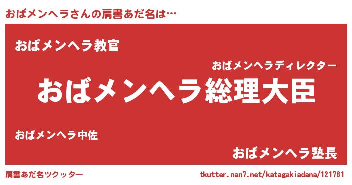 | 男性向けラノベタイトル風あだ名 | 『やはりおばメンヘラの青春ラブコメはまちがっている 』 |