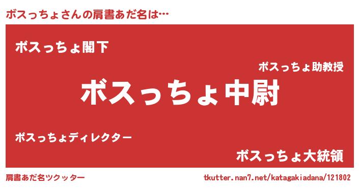 | ヘコむあだ名 | 『豆乳』『ボスお』『ボスっちょ(笑)』 |