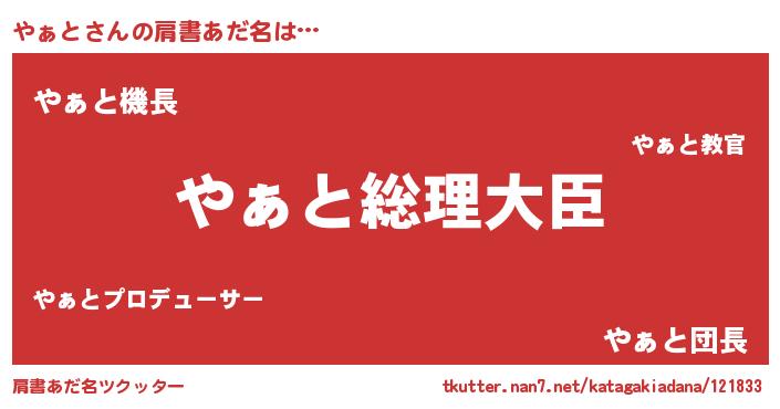 ヘコむあだ名 | 『豆乳』『やぁっぺ』『やぁと(笑)』 |