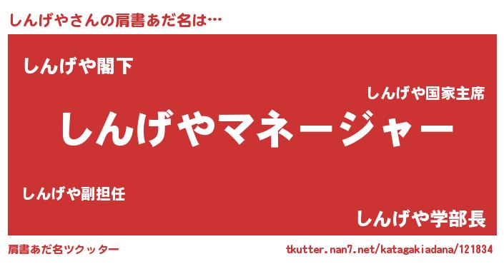 | ヒーロー風カッコイイあだ名 | 『究極戦士シンゲヤ』『愛の使者しんげや』 |