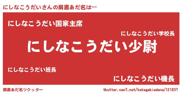 | 料理風あだ名 | 『にしなこうだいごはん』 |