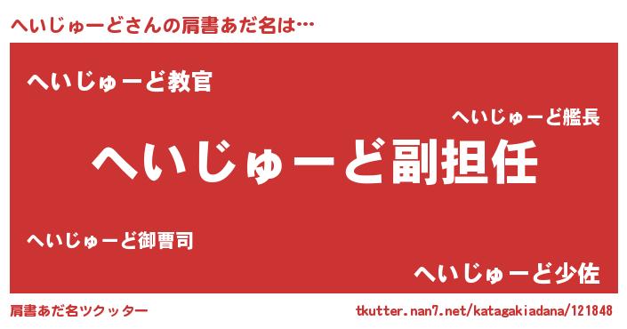| 男性向けラノベタイトル風あだ名 | 『へいじゅーどという概念が存在しない退屈な世界 』 |