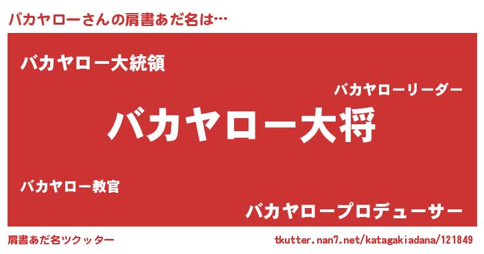 | 男性向けラノベタイトル風あだ名 | 『バカヤロースレイヤー』 |
