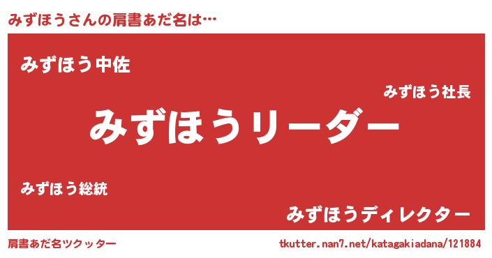 | 女子向けラノベタイトル風あだ名 | 『みずほうは平凡を望む』 |
