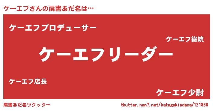 | 意味不明あだ名 | 『とにかく怪しいケーエフ』 |