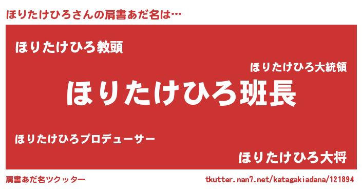 | ポケモン風あだ名 | 『ヒホリタケヒロ』『ゼニホリ』 |