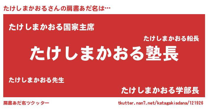 | 胡散臭い通販商品みたいなあだ名 | 『信頼と実績のネックレス…その名も「たけしまかおる」』 |